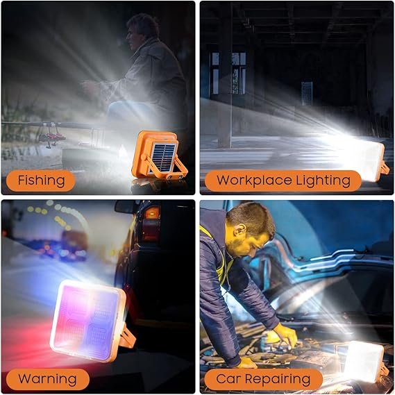 【Durable & Waterproof 】Made of high-strength ABS+PC material, exquisite workmanship and durable. The solar work light is rated IP65 waterproof, and can withstand rain, wind, snow, ice and wet conditions. The size is 5.5”×5.5”×2”, 0.9lb, easy carry and light weight,covenient for any occasion.